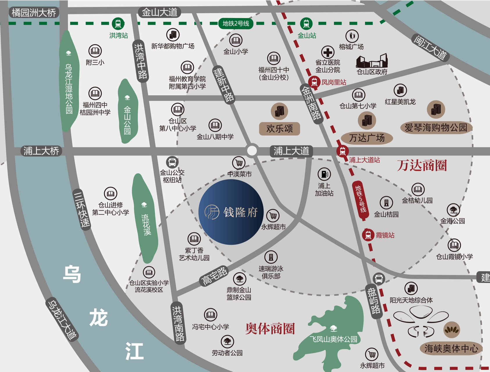 福晟钱隆府地理位置优越,周边有多个知名商圈,如仓山万达广场、爱琴海购物中心等,为居民提供了丰富的购物、餐饮和娱乐选择。同时,该地区的交通网络发达,有多条城市主干道和地铁线路经过,使得居民的出行非常便捷。