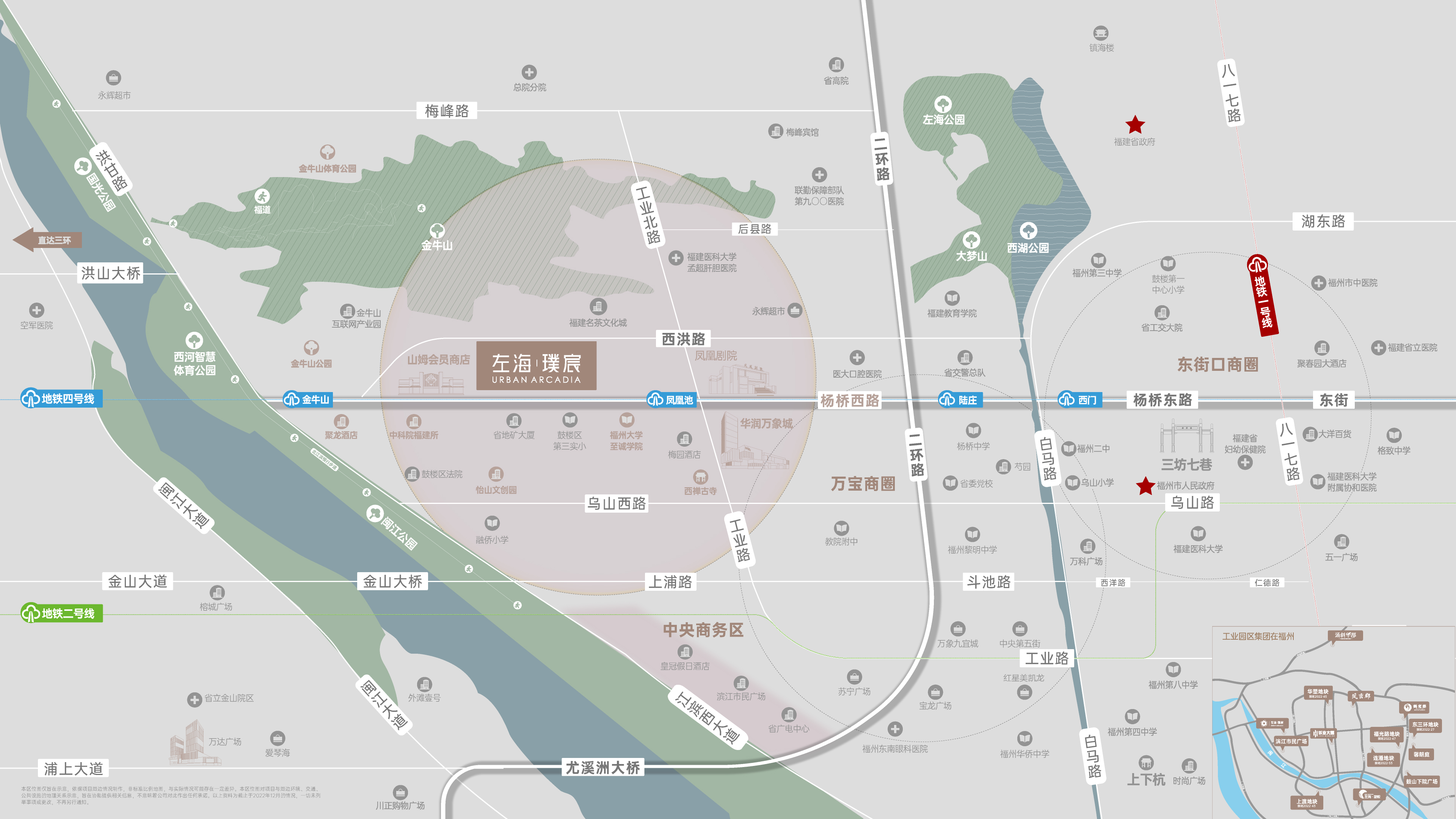 除了优秀的户型设计外,左海璞宸还拥有便捷的交通网络。项目位于城市的核心地带,毗邻地铁4号线凤凰池站,仅需步行500米即可到达地铁站口。乘坐地铁几分钟便可直达市中心,无论是上班通勤还是周末出游都非常方便。此外,项目附近还有多条主要道路如金牛山高架-洪山桥等无红绿灯通行的道路以及杨桥西路等主干道环绕四周,方便快速地连接三环快速路和其他重要交通节点,轻松抵达全城各个角落。这些优越的交通条件使得居住在左海璞宸的居民能够享受到高效便捷的出行体验。