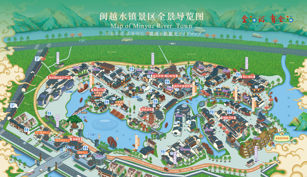 闽越水镇不仅拥有优美的自然环境和舒适的居住条件,还配备了完善的配套设施。立体路网、地铁二号线、闽江游艇码头等交通设施便捷畅通;永嘉天地、万家广场等商业配套让人们购物无忧;竹岐小学、竹岐中学等教育资源丰富;竹岐医院则提供了便捷的医疗服务。此外,滨江生态花海公园、金水湖景区等自然景观更是为游客们提供了休闲娱乐的好去处。