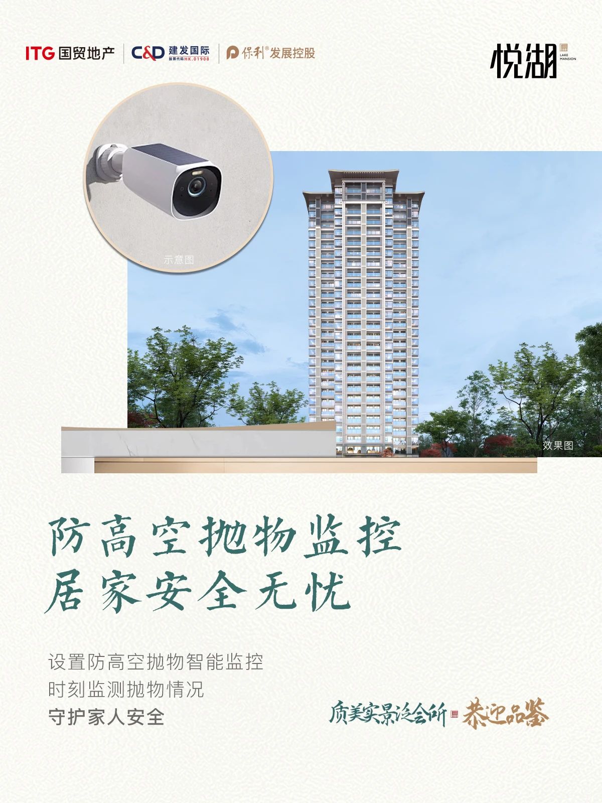 四、防高空抛物智能监控:科技赋能生活安全 高空抛物一直是城市居住的一大隐患,悦湖对此给予了高度重视。通过引入防高空抛物智能监控系统,悦湖能够实时监控并预警高空抛物行为,有效防止潜在的安全风险。这一举措不仅体现了悦湖对居民生命安全的高度负责,更是科技赋能生活安全的生动实践。