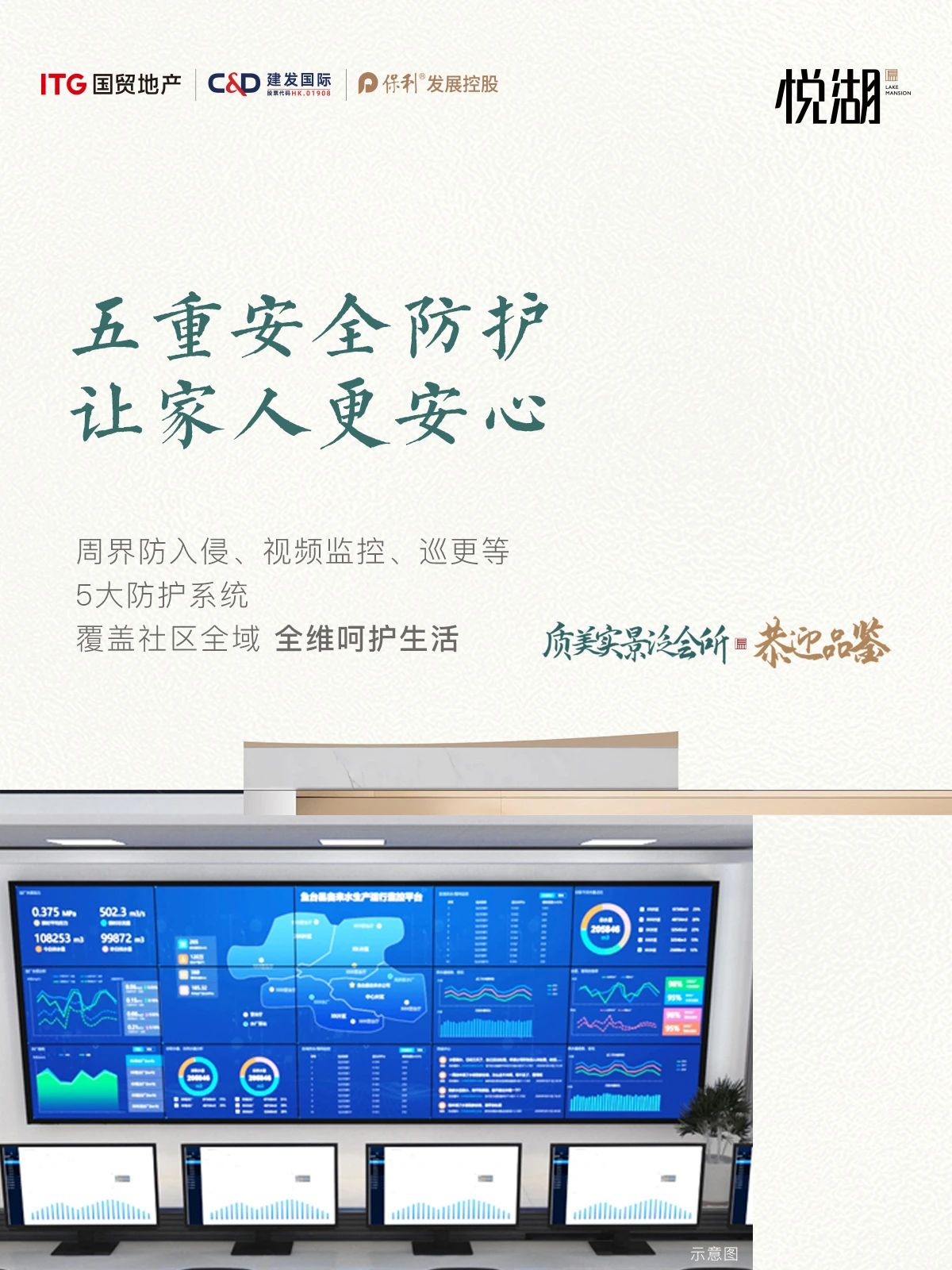 三、5重安全防护:全方位的安心守护 安全,始终是居住的第一要务。悦湖深谙此道,因此特别构建了包含周界防入侵、巡更在内的5重安全防护系统。这些系统如同社区的隐形守护者,24小时不间断地监控着每一个角落,确保业主的人身和财产安全。在悦湖,每一位居民都能享受到这份来自科技的安心守护,让家真正成为最安全的港湾。