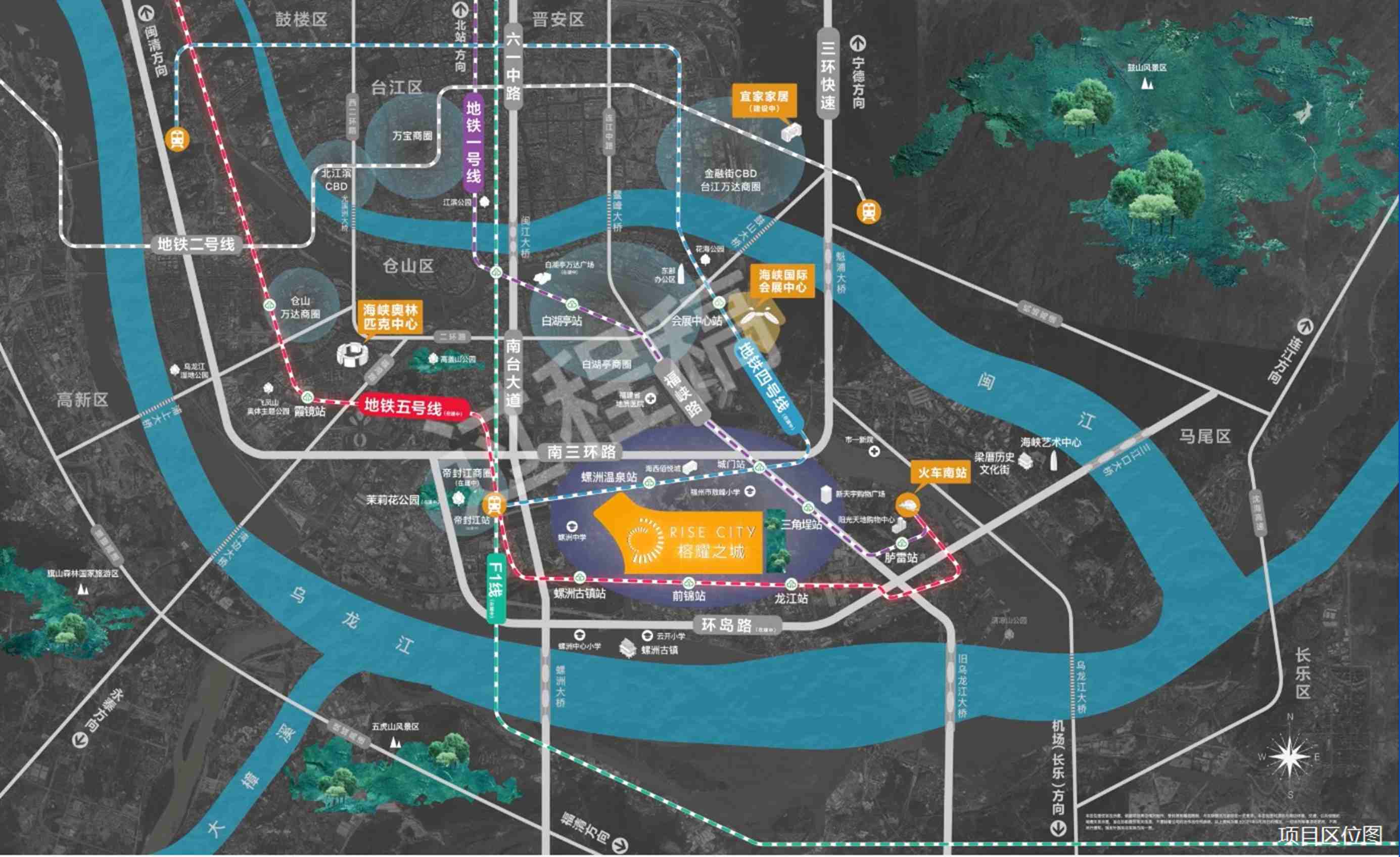 首开融创榕耀之城,坐落于福州仓山区城峰路,这一位置本身就蕴含着巨大的发展潜力。项目周边不仅有地铁1号线、4号线、5号线以及F1地铁线路经过,形成了四通八达的交通网络,让业主的通勤和出行变得极为便捷。特别是与地铁1号线三角埕站直线距离仅约600米,这样的地理位置优势,无疑为项目的热销奠定了坚实的基础。