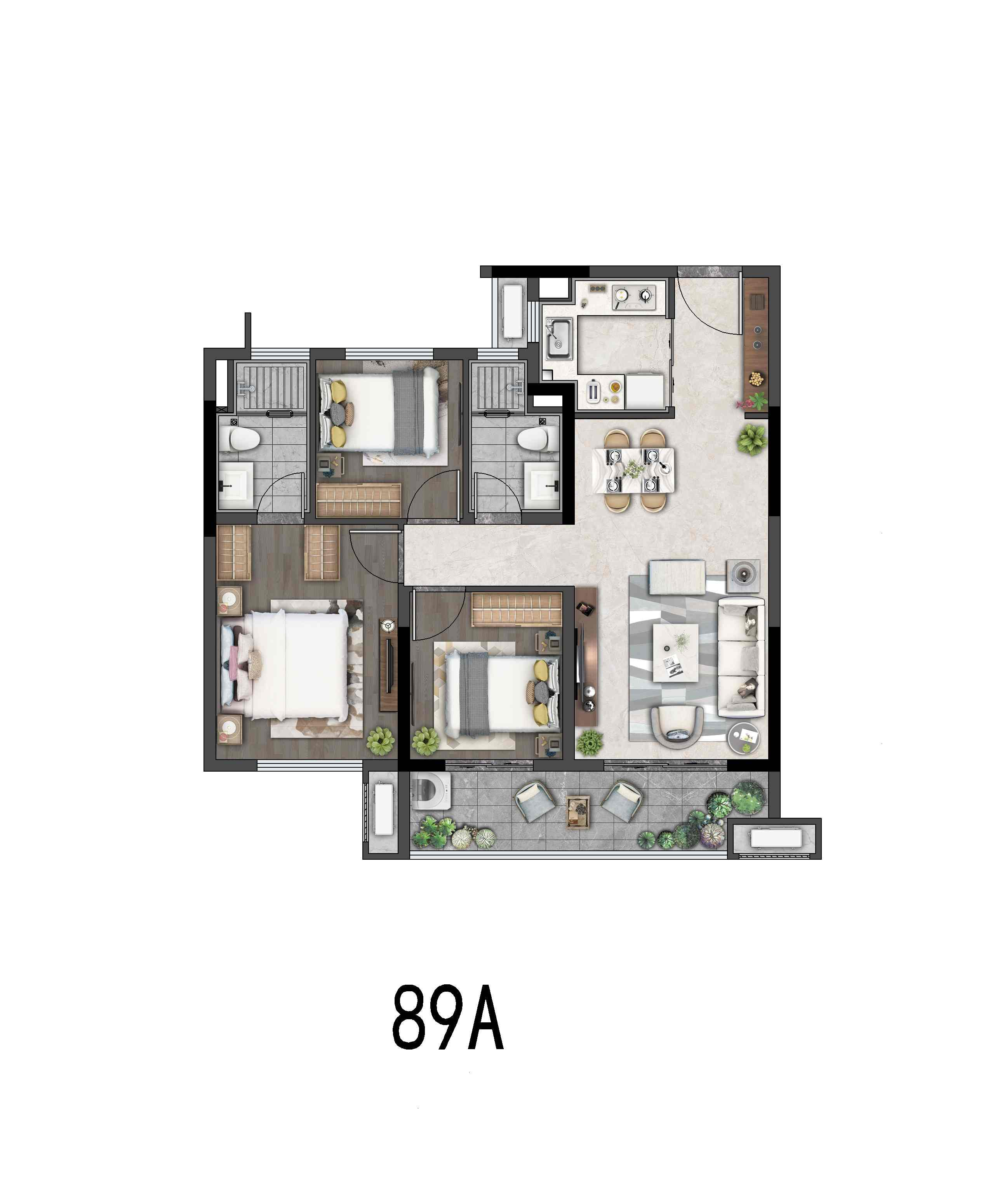 爆款户型:89㎡大横厅,空间与舒适的完美结合 龙湖盛天·景粼天著精准把握了福州精英客群对居住空间和品质的需求,推出了极具竞争力的爆款户型——89㎡大横厅。这一户型设计独具匠心,南向三开间布局确保了充足的自然采光,主卧朝南设计则保证了居住者的舒适体验。客厅面向景观面,使得空间更加通透,而公区和主卧的合理布局则确保了两者之间的和谐平衡。此外,约3.5米的公区宽度和约3.3米的主卧宽度,以及奢配的豪华星级主卧套间,都体现了对居住者生活方式的深刻理解。