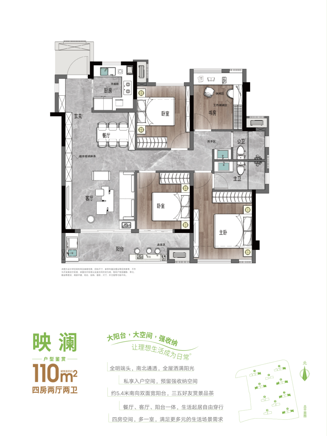 在空间设计方面,新投·映南台实现了多项突破,尤其是得房率普遍超过90%,其中建面约110平方米、115平方米、130平方米的户型更是达到了约94%的得房率,这一数据在同类项目中堪称翘楚。项目通过精细化设计,最大化利用每一寸空间,为业主提供更宽敞、更舒适的居住体验。