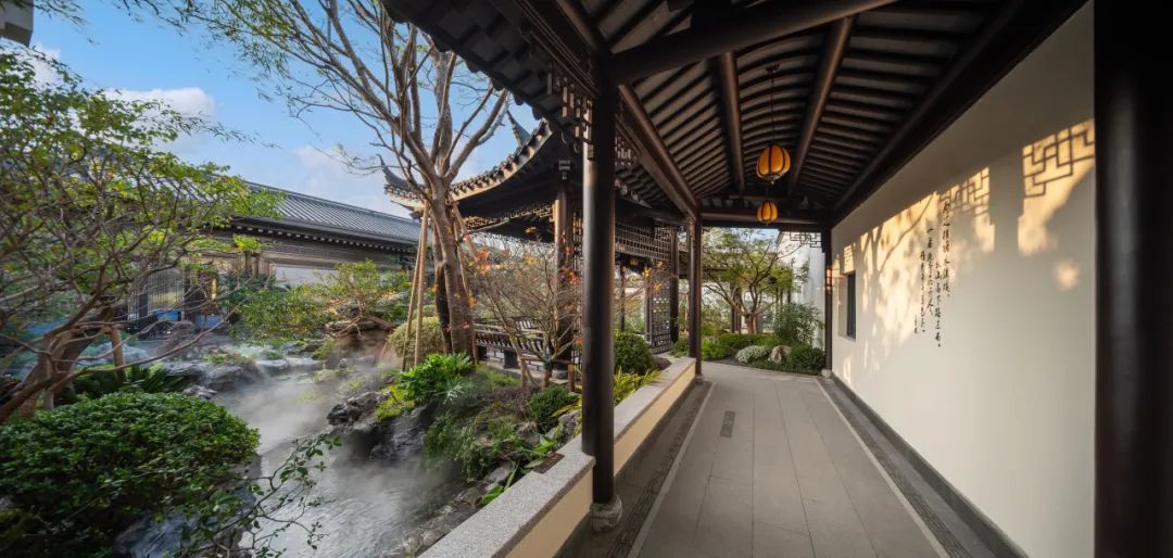 新中式风格:外立面融合“儒门、道园、唐风”元素,园林设计借鉴福州三坊七巷,打造三进归家礼序、一轴十四院的王府中式景观,中央景观区含全龄儿童乐园、邻里会客厅等设施。