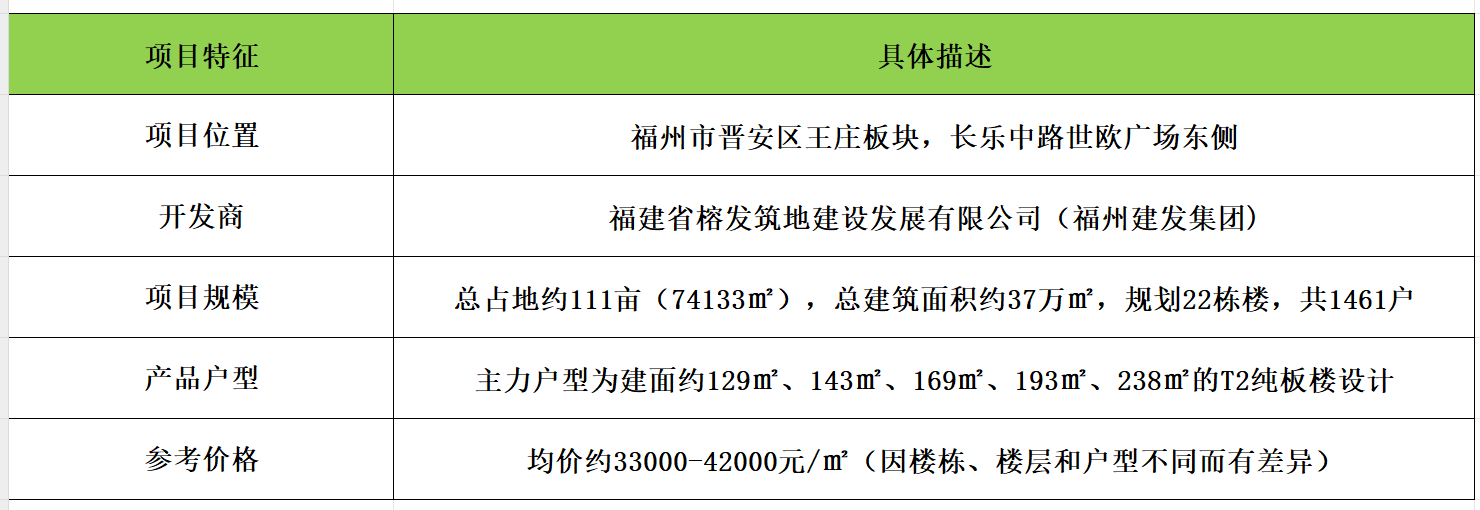 稀缺的地段与成熟配套:项目位于晋安、鼓楼、台江三区交汇的王庄核心区,最大的优势是周边配套非常成熟。紧邻世欧王庄广场等大型商业体,生活气息浓厚。交通上靠近地铁2号线,并有规划中的地铁线路,出行便利 。同时,周边环绕晋安河公园、光明港公园等,生态资源良好 。