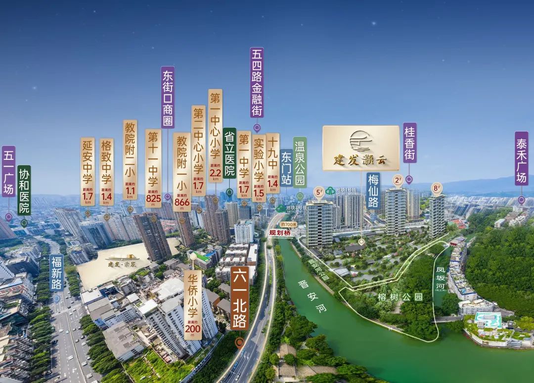 优越地段与便捷交通:项目地处晋安区核心板块,与鼓楼区仅一河之隔。规划中的“得贵路跨晋安河桥”建成后,将直接连通鼓楼,进一步缩短前往东街口商圈的通行时间,共享鼓楼成熟的商业、医疗等优质资源。周边有地铁1号线、2号线和4号线,交通路网发达。