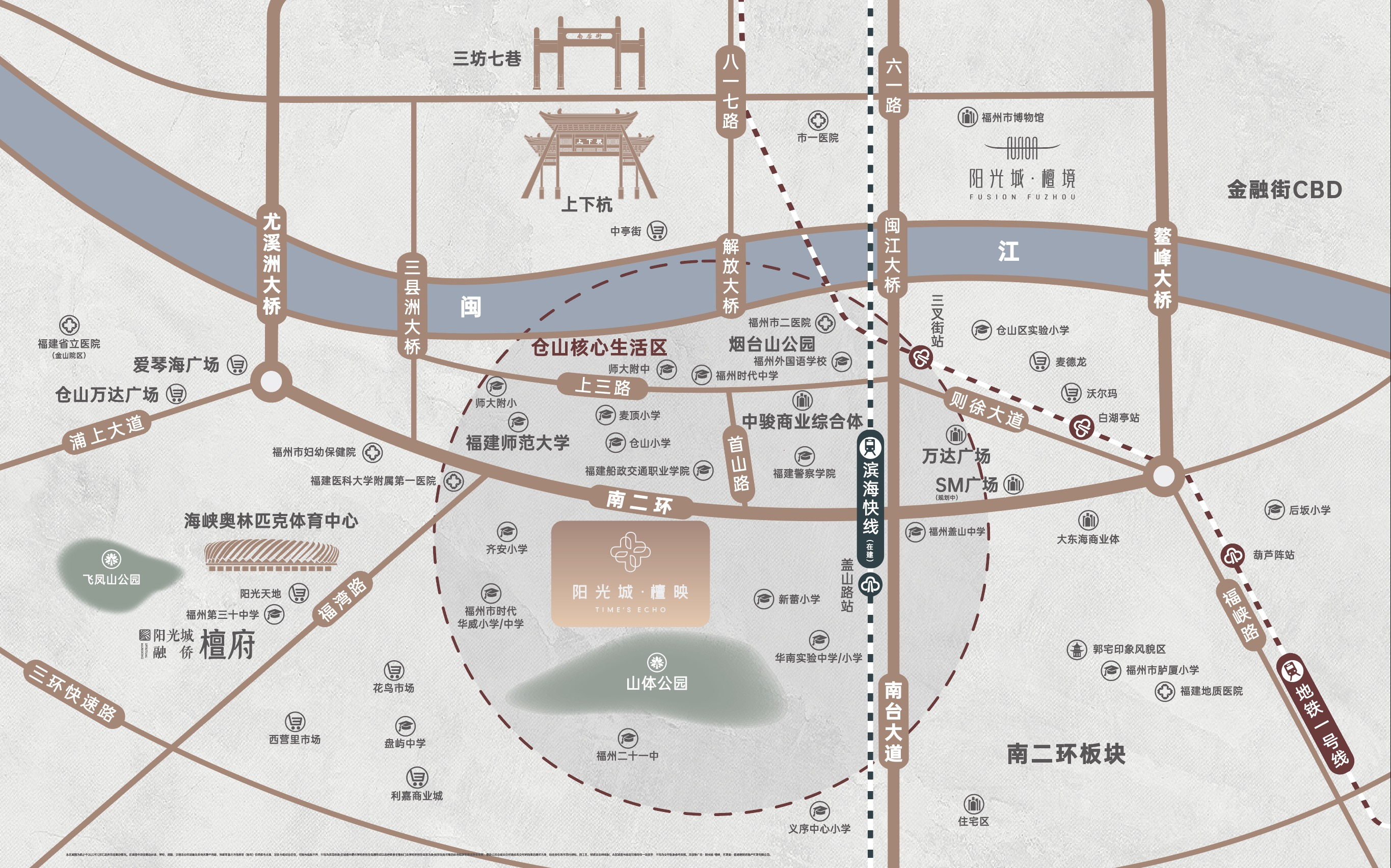 阳光城檀映最大的优势在于其稀缺的主城地段。项目坐落于仓山南二环板块,属于福州传统意义上的中心城区。在土地资源日益稀缺的当下,能在二环内获得新开发项目实属难得,这为项目奠定了天然的保值基础。
