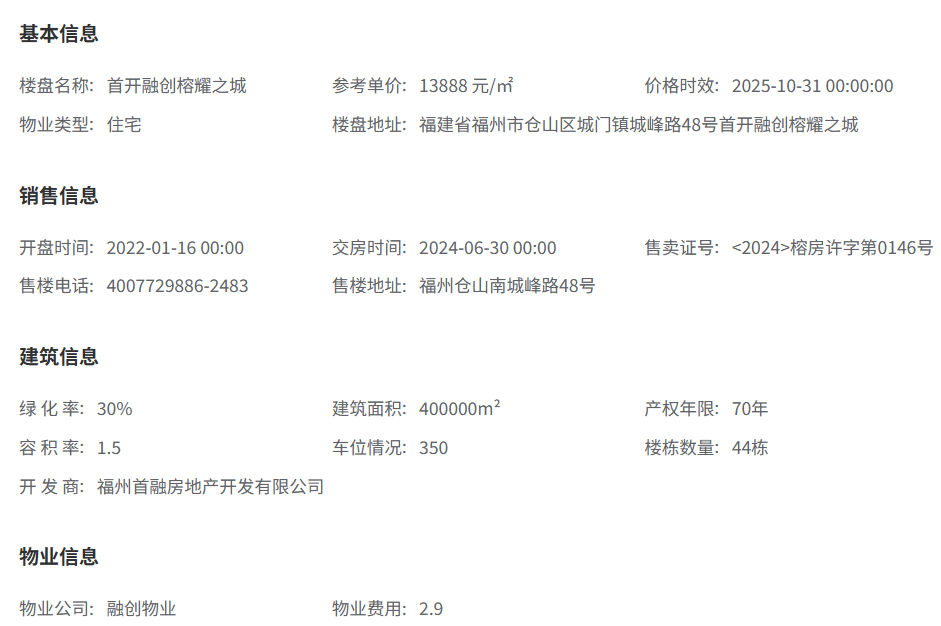 福建省福州市仓山区城门镇城峰路48号首开融创榕耀之城