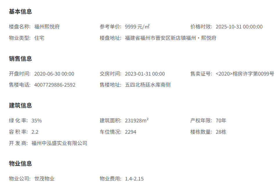 1. 开发经验:熙悦府的开发商为福建嘉胤房地产开发有限公司,是一家本土房企,对福州本地市场有一定理解,并具备项目开发经验。