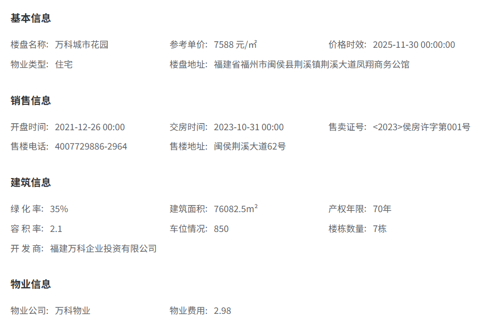 位于闽侯县荆溪镇的万科城市花园,以7588元/㎡的均价和78-109㎡的户型面向市场,这一价格在福州区域无疑具有相当吸引力。作为万科在福州的重要布局,该项目承载着刚需群体的安家梦想。