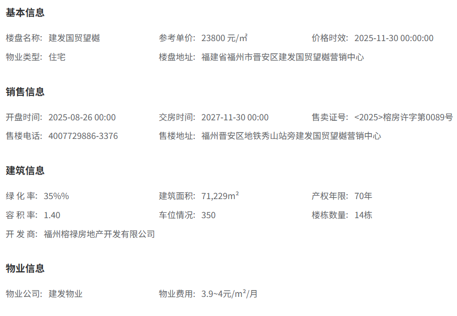 建发国贸望樾位于福州市晋安区秀山板块,横屿山东麓,隶属东二环泰禾广场辐射圈。项目由建发房产与国贸地产两大国企联合开发,占地约6.4万平方米,容积率2.4,规划了16栋高层住宅,主打103-143㎡的三至四房户型,定位中高端改善市场。