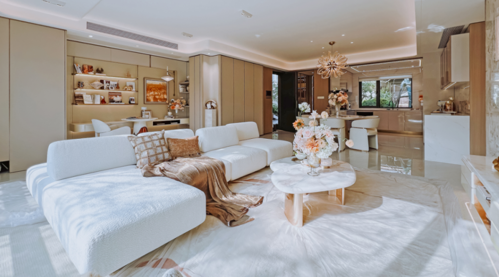 项目采用建发标志性的“新中式建筑风格”,以黛瓦、白墙、园林水景为特色,瞄准改善型客群。