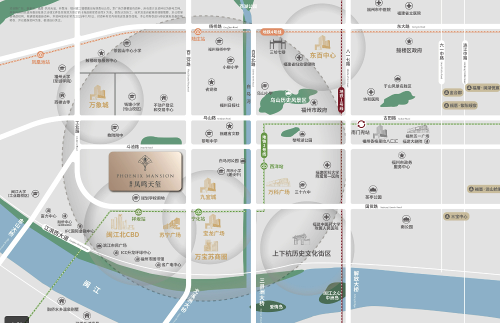 地铁出行:项目距离地铁2号线祥坂站约500-700米,距4号线凤凰池站或西门站约500-800米,2025年4号线已全线通车,双地铁交汇,30分钟内可达鼓楼、仓山核心区。