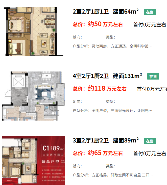 64-78㎡两房:适合刚需客户,总价较低,购房门槛极低
