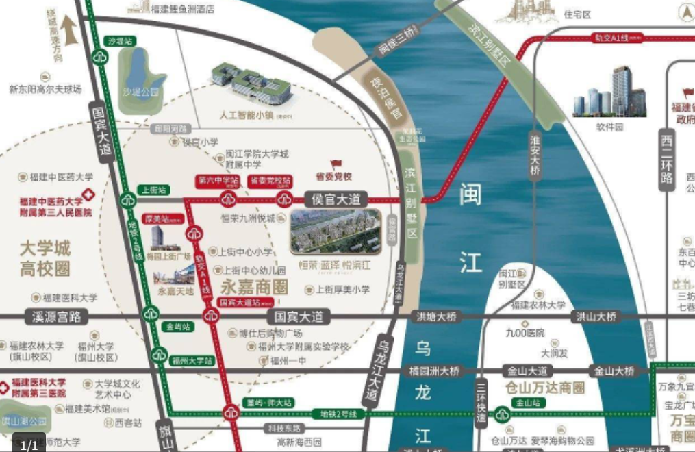 恒荣蓝泽·悦滨江位于福州闽侯上街候官大道9号(省委党校新校区对面),由福州恒荣蓝泽置业有限公司开发打造。项目傲踞洪塘桥头堡,东瞰闽江-乌龙江美景,是一个新中式洋房社区。