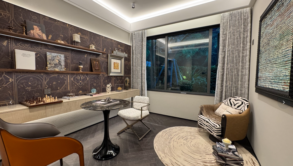 社区采用“一环两轴七境”的沉浸式景观布局,将星级度假园林嵌入社区。约460㎡下沉式庭院与约1120㎡高端会所,配备恒温泳池、健身房、瑜伽室、书吧等,为业主提供专属精英品质生活体验。