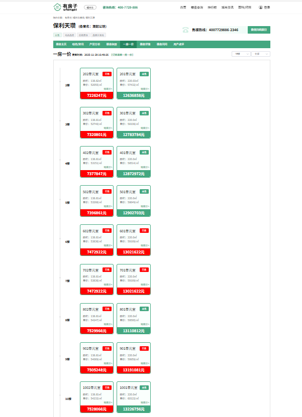 保利天瓒参考均价约4.2万-4.5万/㎡,而其备案均价为58,481元/㎡,实际销售价格低于备案价。值得注意的是,项目得房率相对较低,约72%-78%,这意味着同等建筑面积下,实际可使用空间可能不如部分竞品。以最热销的143㎡户型为例,总价约600-650万元,但实际得房面积与得房率较高的项目相比可能存在一定差距。购房者需仔细核算实际使用面积,判断性价比是否符合预期。