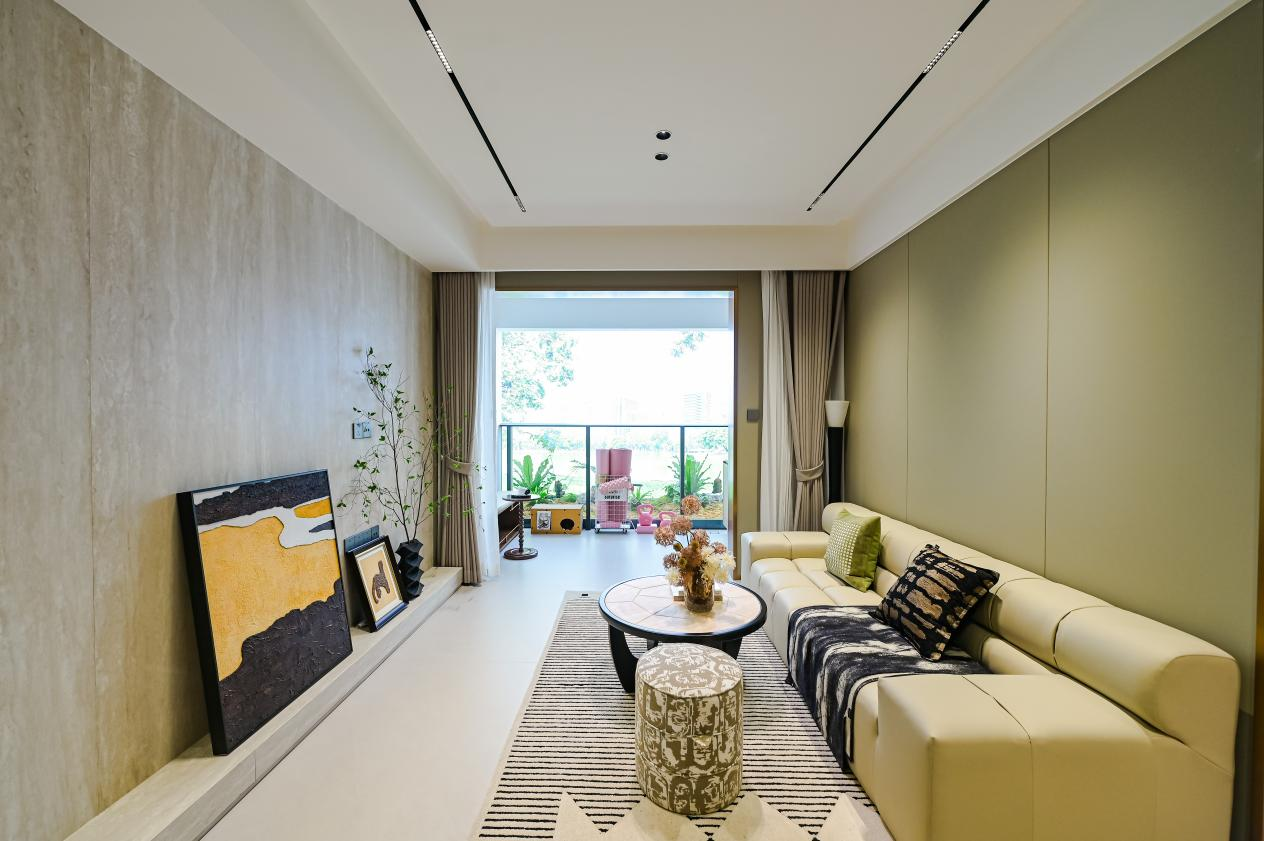 130㎡四房横厅:采用6.8米双联阳台+270°环幕视野,弹性空间可改造为茶室或书房,双套房设计满足多孩家庭需求。