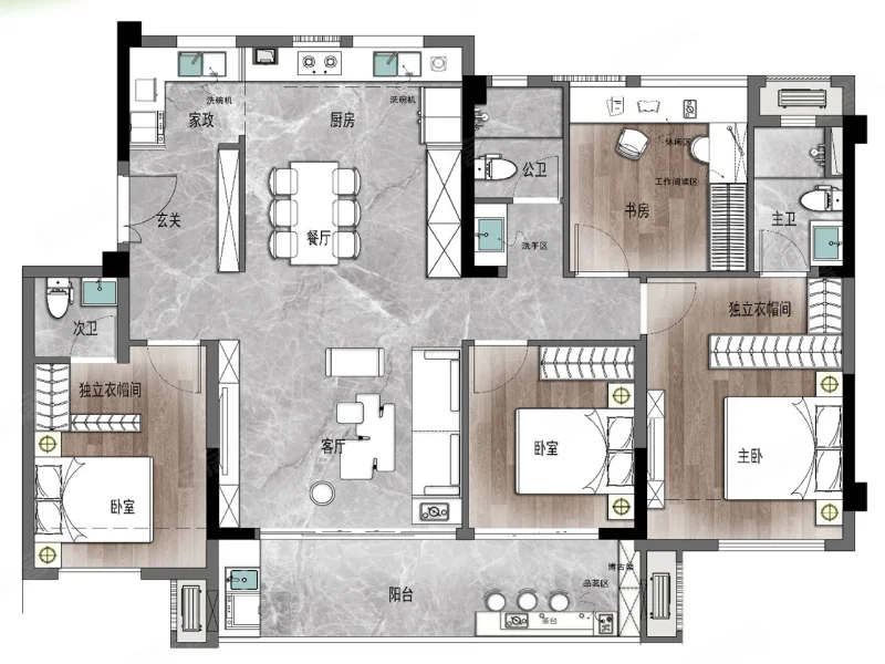 户型设计是项目的亮点之一。主力户型为89-130㎡的三房至四房,满足不同家庭结构的需求。