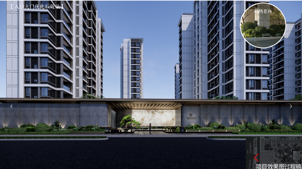 社区归家入口处匠心打造了约60米宽、约6.1米高的绮丽门庭,以恢弘的尺度和精致的细节,营造出尊贵的归家仪式感。