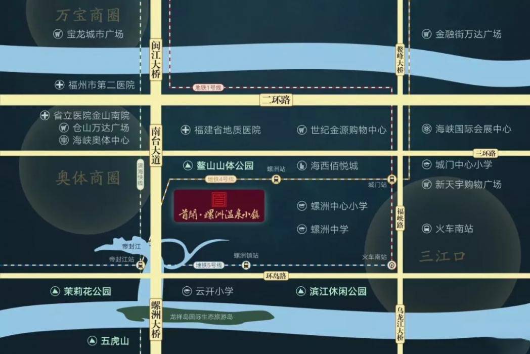 首开国仕府的最大亮点之一是其四地铁环绕的交通优势。项目紧邻地铁4号线螺洲温泉站(约200米)和5号线螺洲古镇站(约600米),可轻松换乘1号线及F1滨海快线。同时,周边“三横两纵”的立体交通路网完善,二环、三环、环岛路等城市主干道环绕,经福峡路、螺洲大桥可快速抵达东二环商圈、王庄商圈等城市核心区。