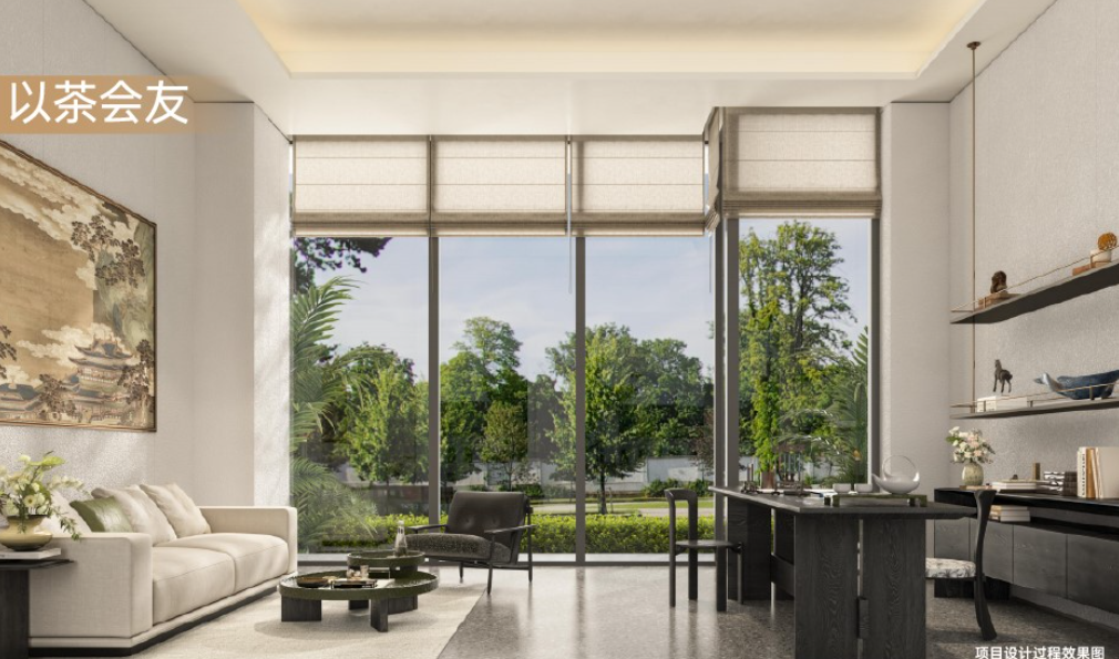 在社区内部,设计者还规划了八重景观与六大圈层雅集会所,通过约1300平方米的下沉式会所和连廊系统,营造沉浸式微度假体验。
