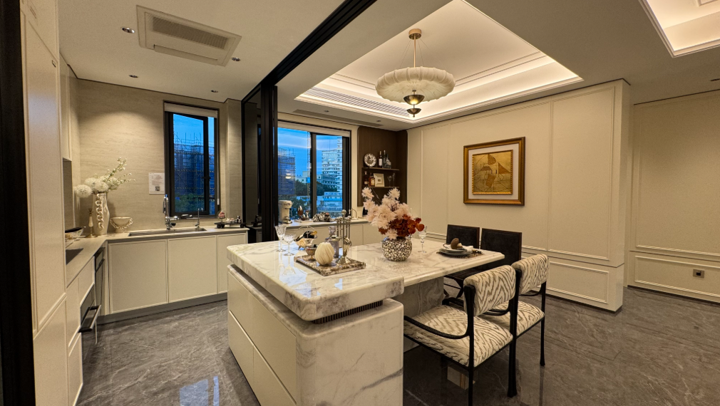 建面约149㎡(四房两厅三卫):格局更为阔绰,拥有超16米南向四开间面宽。通常采用双套房设计,主卧空间可媲美行政套房,LDKB一体化方厅带来灵活多变的家居体验。