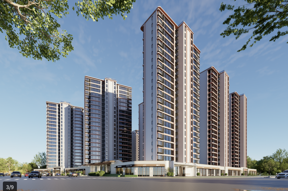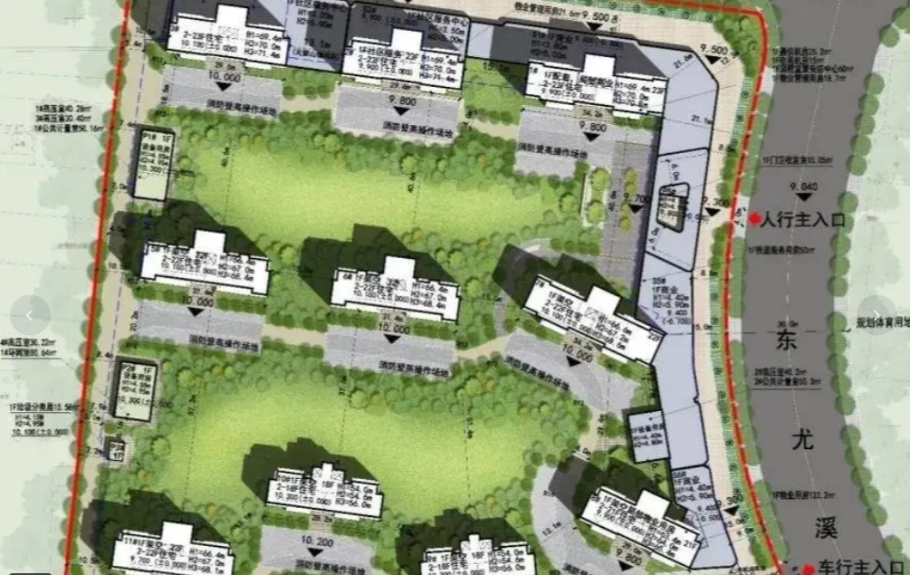 容积率约为2.4,绿地率高达约30%,共规划10栋17-23层的纯商品房住宅,均为2梯2户设计。