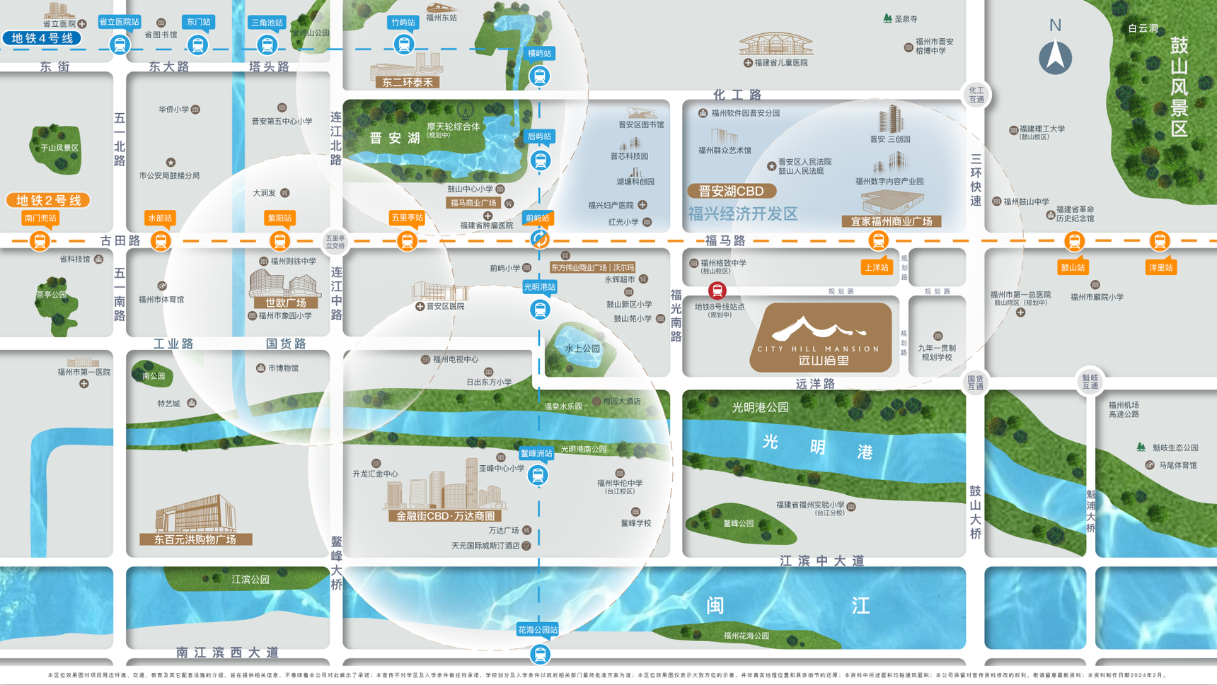 稀缺的生态资源:项目最大的亮点之一是南侧紧邻1200亩的光明港生态公园,并与晋安河串联形成长达27.1公里的滨水景观带。部分楼栋拥有开阔的河景视野,并能远眺鼓山风景区,形成了 “山-水-城”三重景观界面。这种生态资源在主城区尤为稀缺,对居住舒适度和房产的长期价值都是有力支撑。