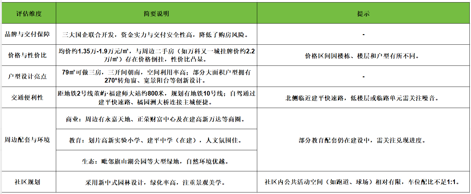国贸建发保利悦湖凭借其强大的国企背书、突出的功能型户型价值和优越的区位潜力,为福州的刚需及刚改客户提供了一个颇具吸引力的选择。然而,购房决策需结合自身实际需求,对项目中存在的噪音、车位及部分配套兑现周期等潜在短板有清晰的认知和接受度。