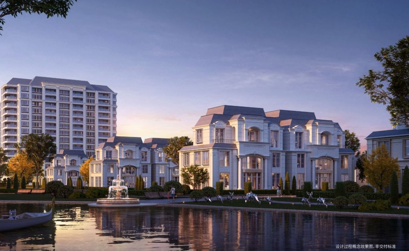 用料的品质与审美:项目采用了干挂石材外立面,并打造了近50米的法式门庭和源自卢浮宫灵感的园林景观。在当下真石漆外立面普遍的情况下,这种对经典质感的追求旨在营造一种历久弥新的高端社区氛围。