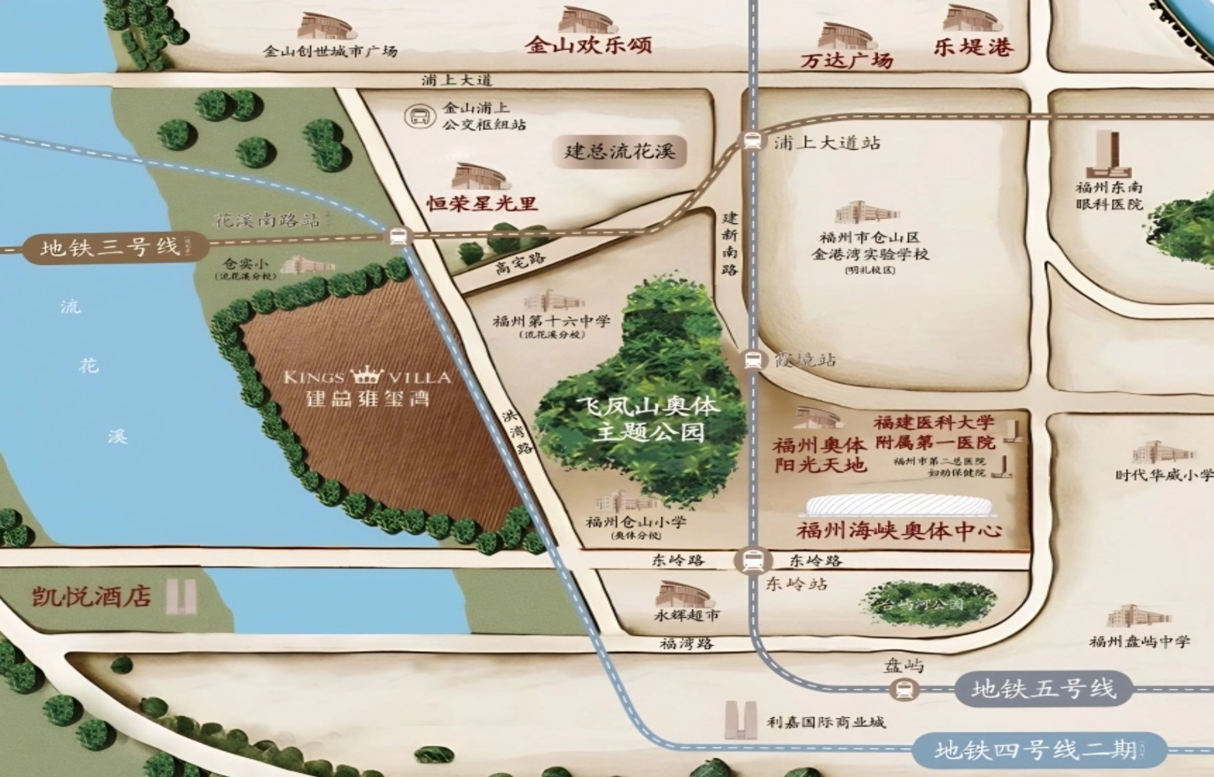生态与板块潜力:项目西邻流花溪公园,东望飞凤山,享有“一河一江一山”的生态资源。所在奥体板块经过多年发展,大型场馆、金山万达、阳光天地等商业配套已相对成熟,具备长期的生活便利性基础。