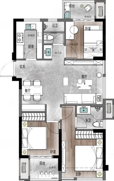 89㎡三房:在有限面积内实现三房功能,平衡了空间与总价,适合首改家庭。