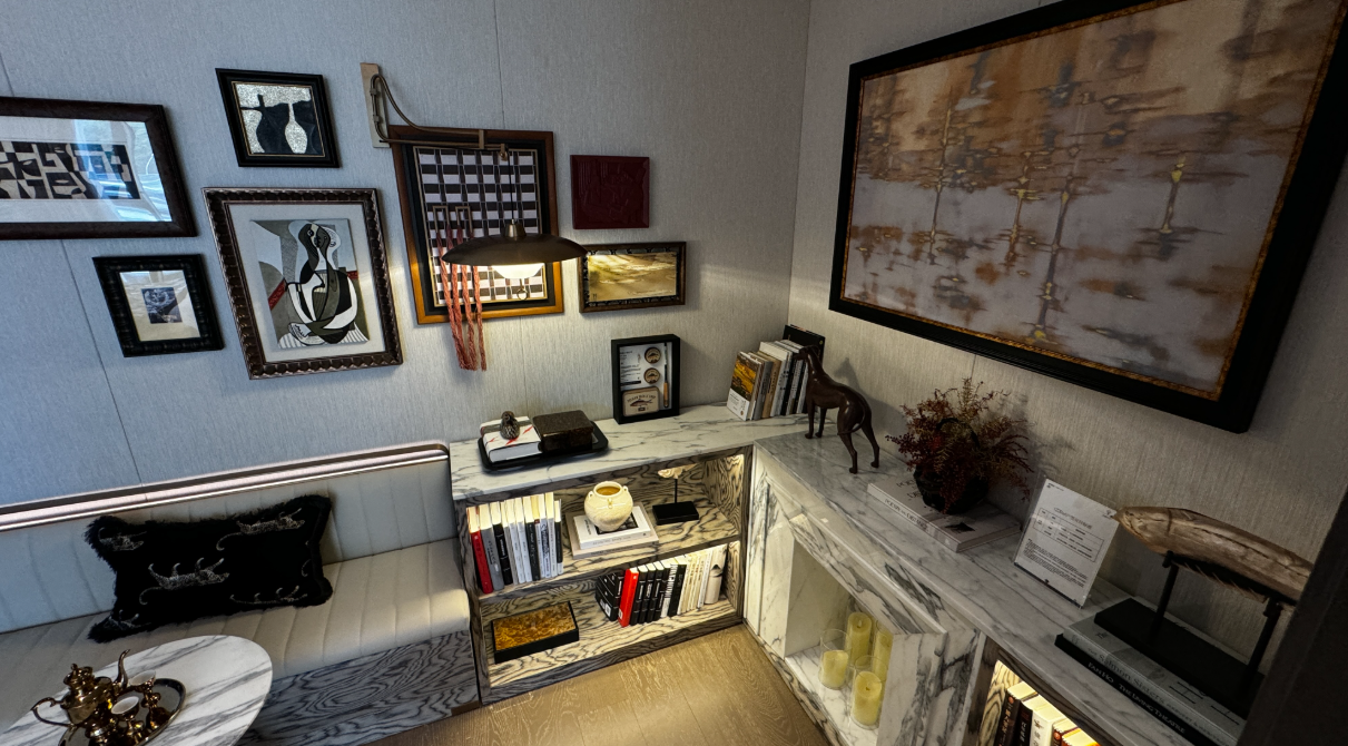 绿城芝蘭月华在社区配套上的投入令人印象深刻。项目打造了1700平方米的雅奢地下会所及400平方米的架空层,涵盖闲弈棋牌室、品茗室、泊宴私宴厅、酌月酒吧等七大功能空间。
