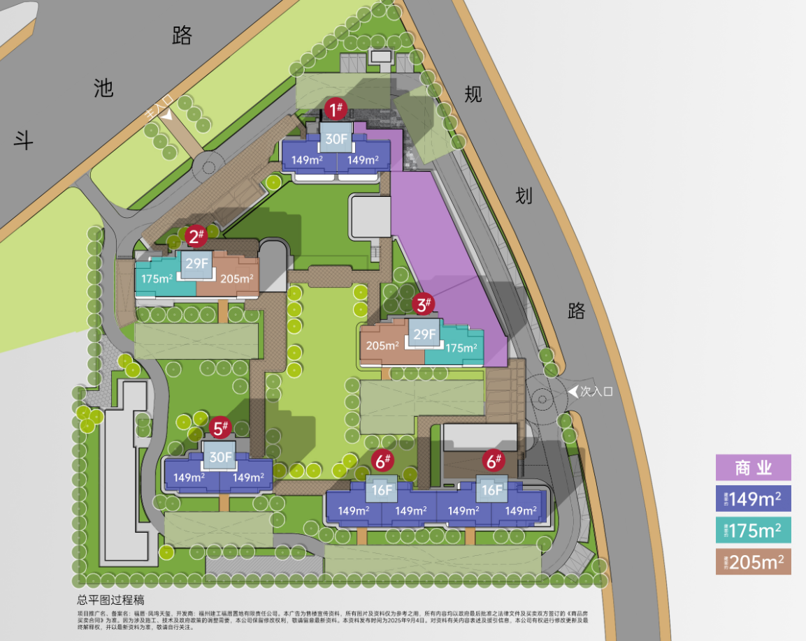 福厝凤鸣天玺坐落于福州市台江区西二环斗池路167号,是福州本土国企福厝置业打造的改善型住宅项目。作为台江老城核心区稀缺的新盘,项目占地面积约24.5亩,规划建设5栋17-30层高层住宅,总户数仅288户,主打建面约149-205㎡大平层户型,定位为高端纯改善社区