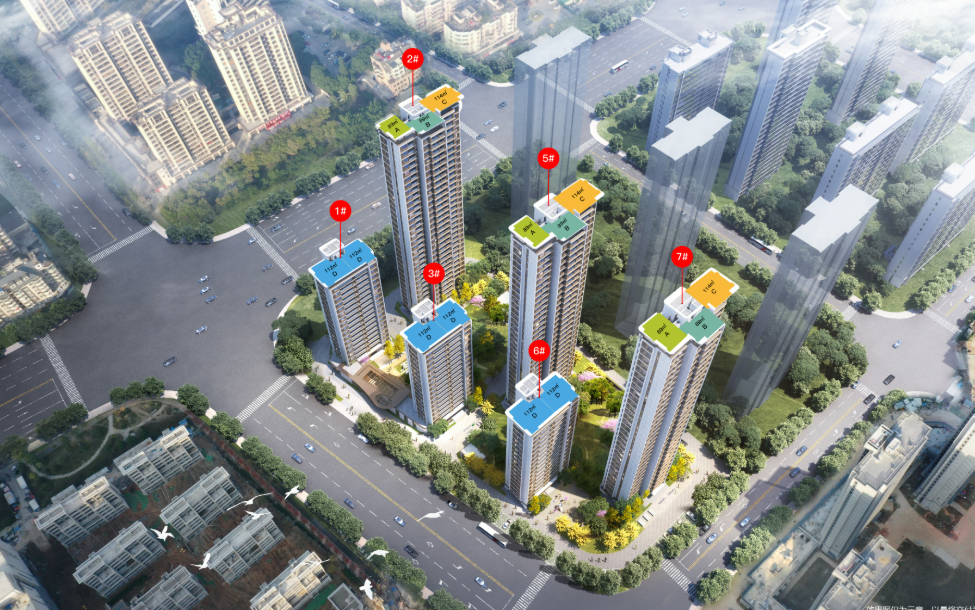 这个小区规划了6栋18-33层的高层住宅楼,形成6栋18F-33F的纯商品房社区,主打“低密社区”概念,采用全高层、大中心花园的布局理念。