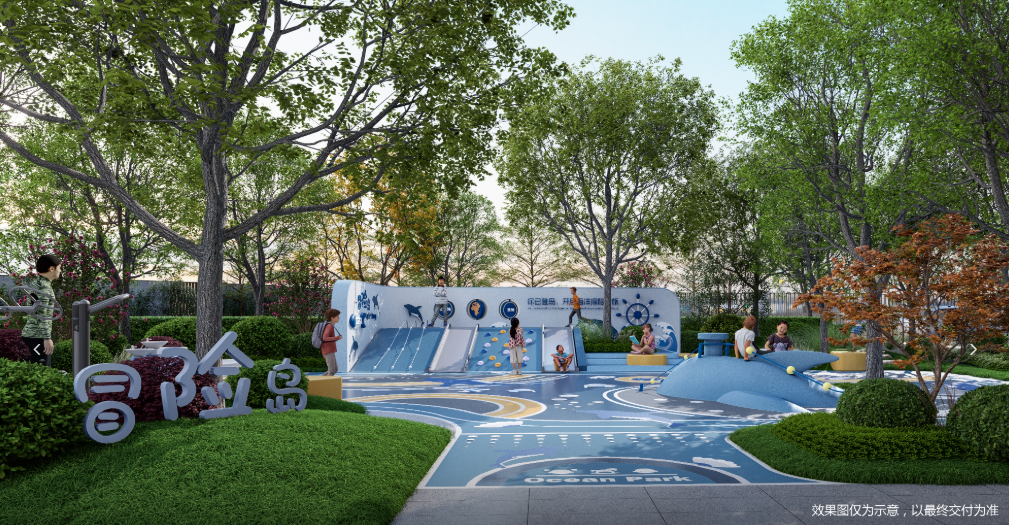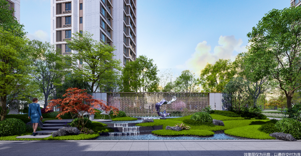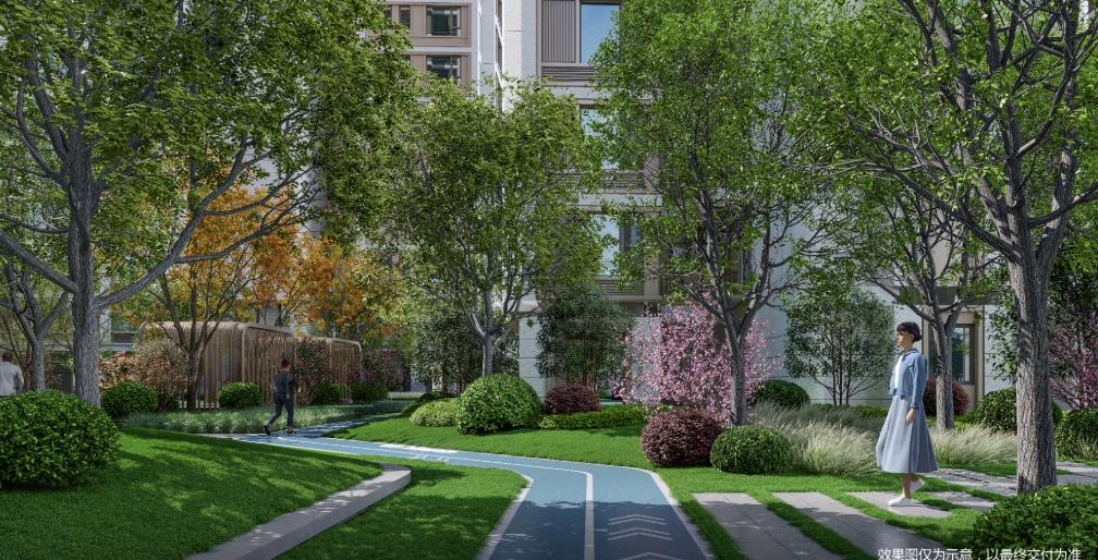 社区内部配套同样丰富,规划了约1.3万㎡社区园林,打造一轴一环双园十二境的森感体验。