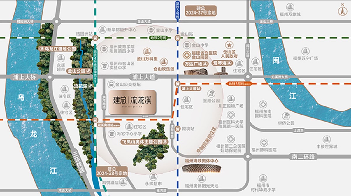 交通便捷性突出:项目最大亮点之一是双地铁覆盖。根据多数资料显示,项目距离地铁5号线凤冈里站约400-500米,属于步行可达的“地铁盘”。同时,通过5号线可便捷换乘其他线路,快速抵达浦上商圈、仓山万达、东街口等城市核心区。此外,周边洪湾路、浦上大道、金山大道等主干道纵横,自驾出行便利。