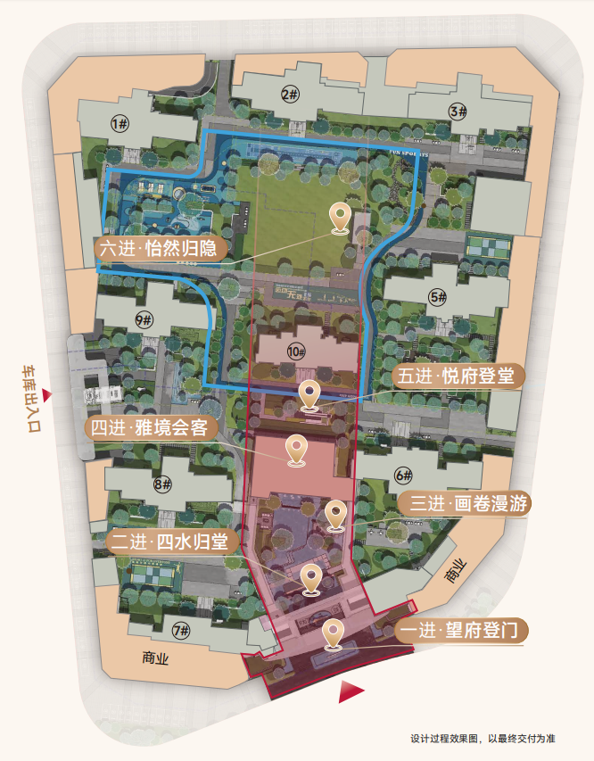 项目承袭宋风造园精髓,匠筑约14万㎡新规住区。宋代飞檐翘角立面造型,一轴六进八园打造宋风画卷,开启松弛归家之旅。中心水苑为序,藏纳宋风意境,玉带连廊环抱六进礼序,晴雨皆从容。新规阳台占比高达约20%,最大约9米阔景阳台,全户型270°折角窗,超大窗墙比,新规3米层高,高得房率带来品质生活。