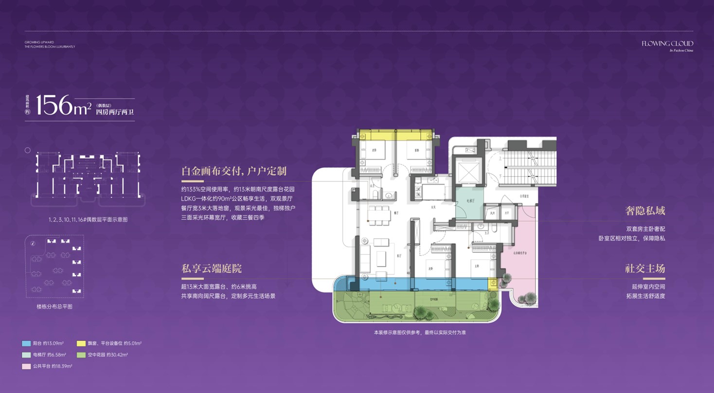 这一项目最引人注目的特色在于其“空中院落”设计。所有户型均配备约30-50㎡的空中花园或露台,部分户型甚至拥有约6米挑高的空中庭院。