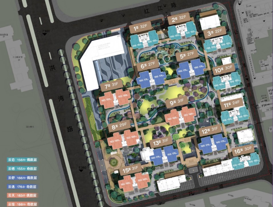 新榕云行规划建设14栋高层住宅,容积率2.99,绿化率30%,共计772户居民。社区配套包括约3500㎡沿街商业和一座约5000㎡幼儿园,满足业主基本生活与教育需求。