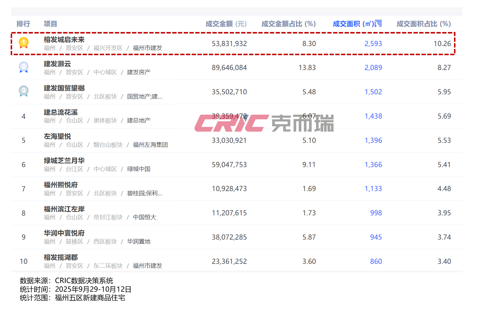 在拿下9月福州认购数榜首后,十月国庆假期后,项目连续两周位列全市网签排行榜TOP1。10月份,榕发城启未来顺势拿下“东区三冠王”,在板块成交占比接近二分之一。