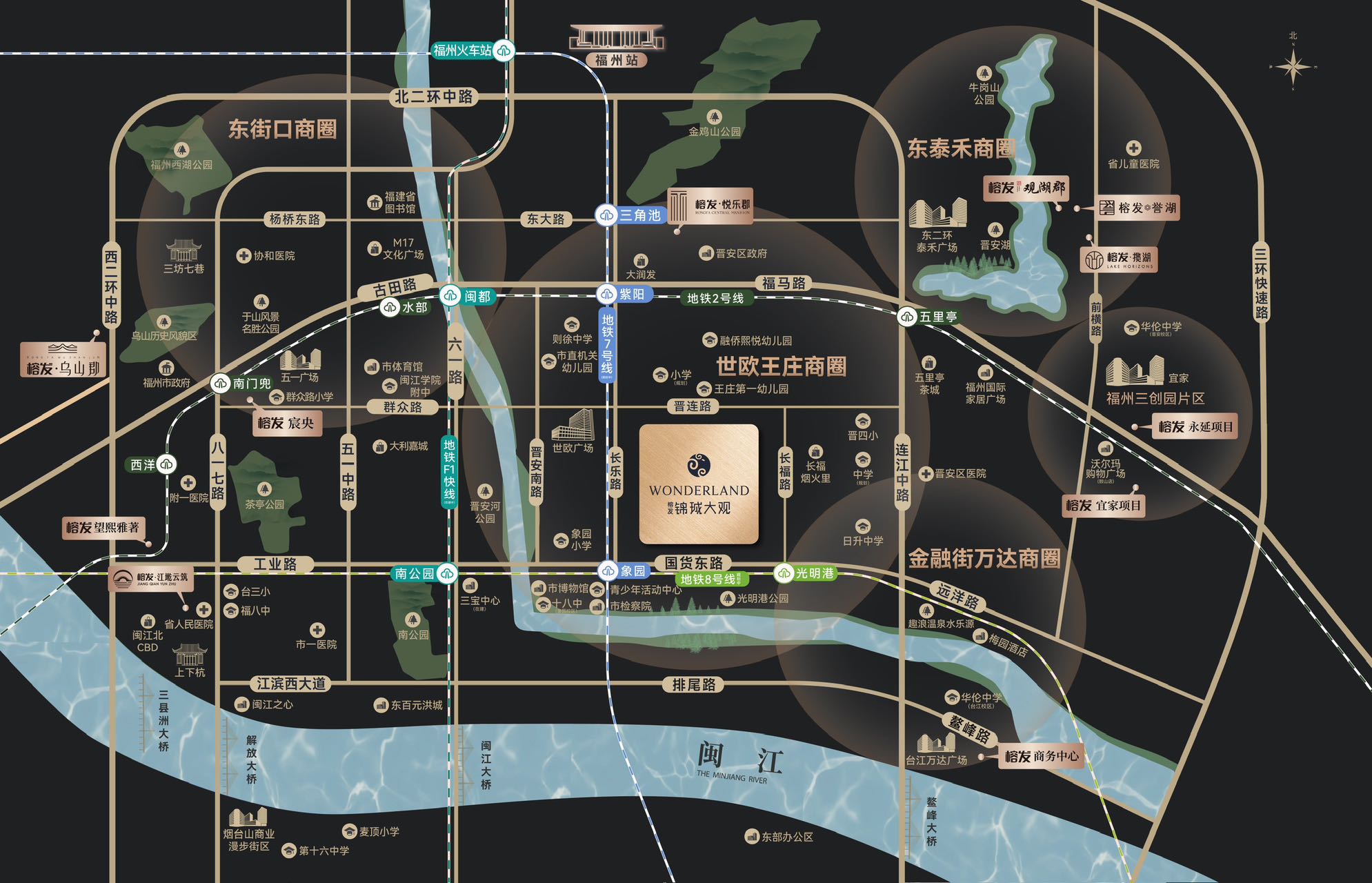 无可复制的黄金地段:项目坐落于福州市晋安区象园街道晋连路(原世欧王庄A2地块),地处晋安、鼓楼、台江三区交汇的王庄板块,是福州传统意义上的繁华市中心。经过多年发展,该区域配套极其成熟,居民可同时享受三区的优质资源。
