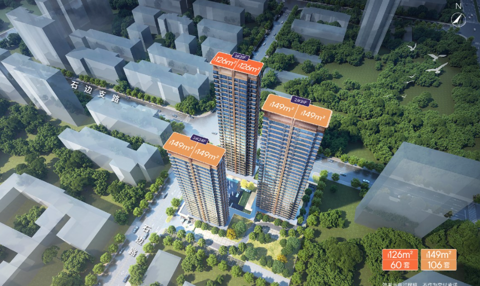 项目规划3栋高层住宅,总计仅166套房源,这一规划确保了社区的圈层纯粹与居住静谧性。