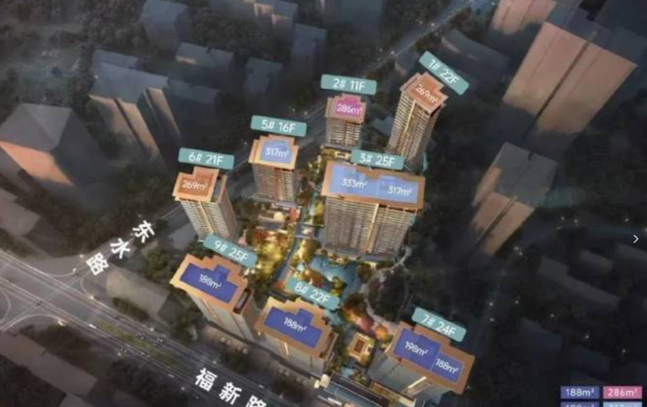 以最小户型188㎡计算,总价门槛高达1200万元以上,而333㎡的户型更是轻松达到2000万+量级。