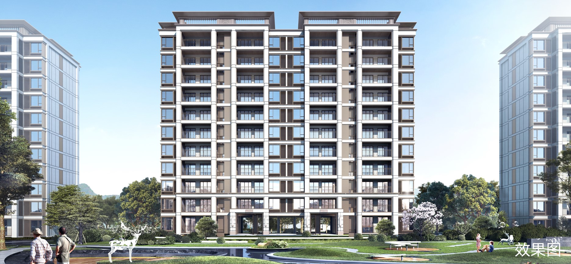 社区采用低密度宜居理念,楼间距比例约1:1,确保每户良好的采光与通风。新中式建筑风格搭配“一轴八境”诗意园林,形成内外双园景观设计,外揽生态公园,内享园林美景。