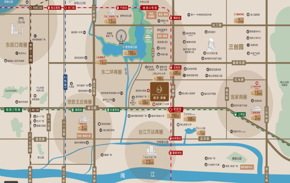 榕发·湖樾具备真正的 “双轨地铁房”属性,距离已通车的地铁2号线与规划中的4号线交汇的前屿站仅约200-320米。