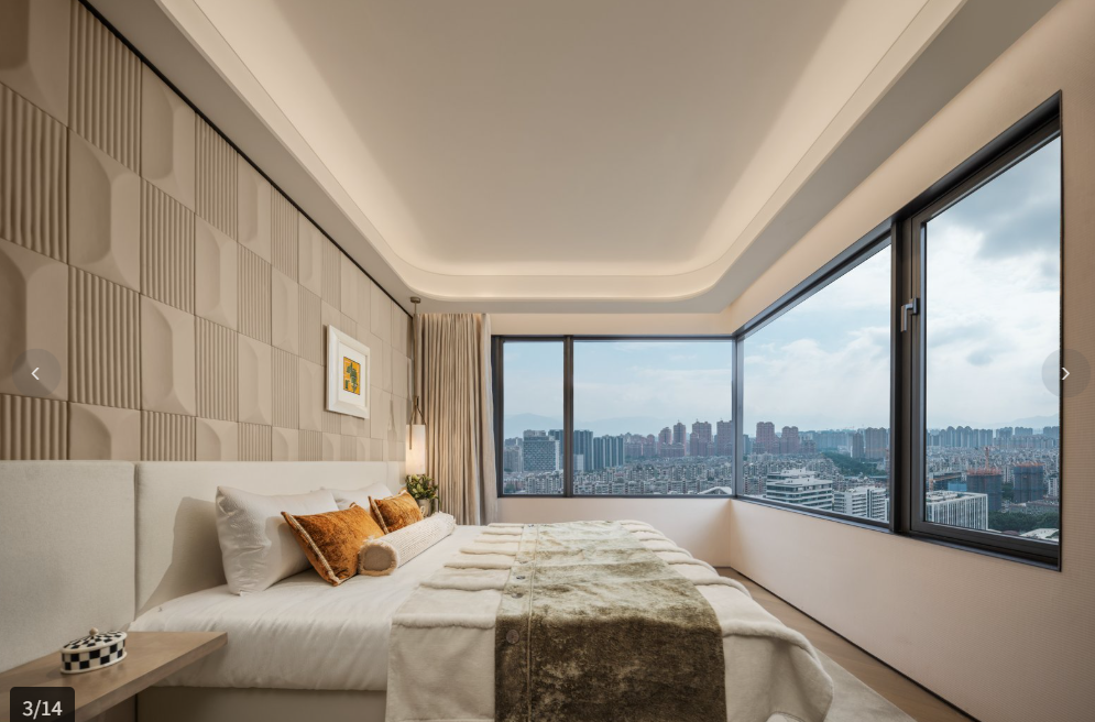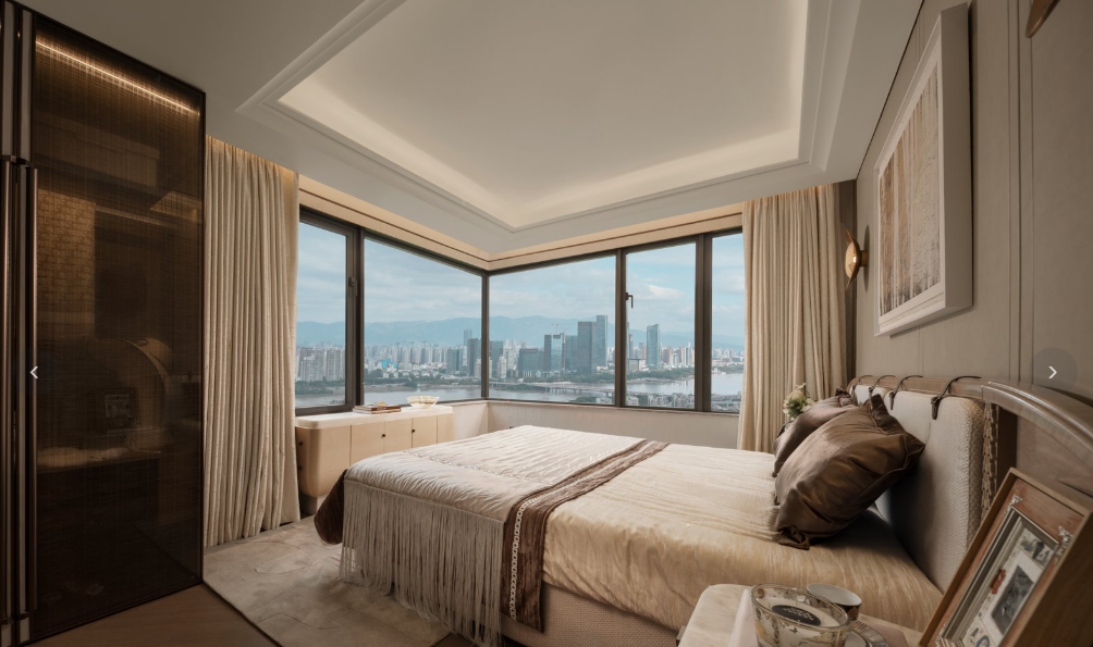 部分户型主卧创新性地设计了270度转角窗,引入更多自然光与景观。项目宣称的得房率约85%,优于市场同类产品,这在一定程度上提升了空间利用率。