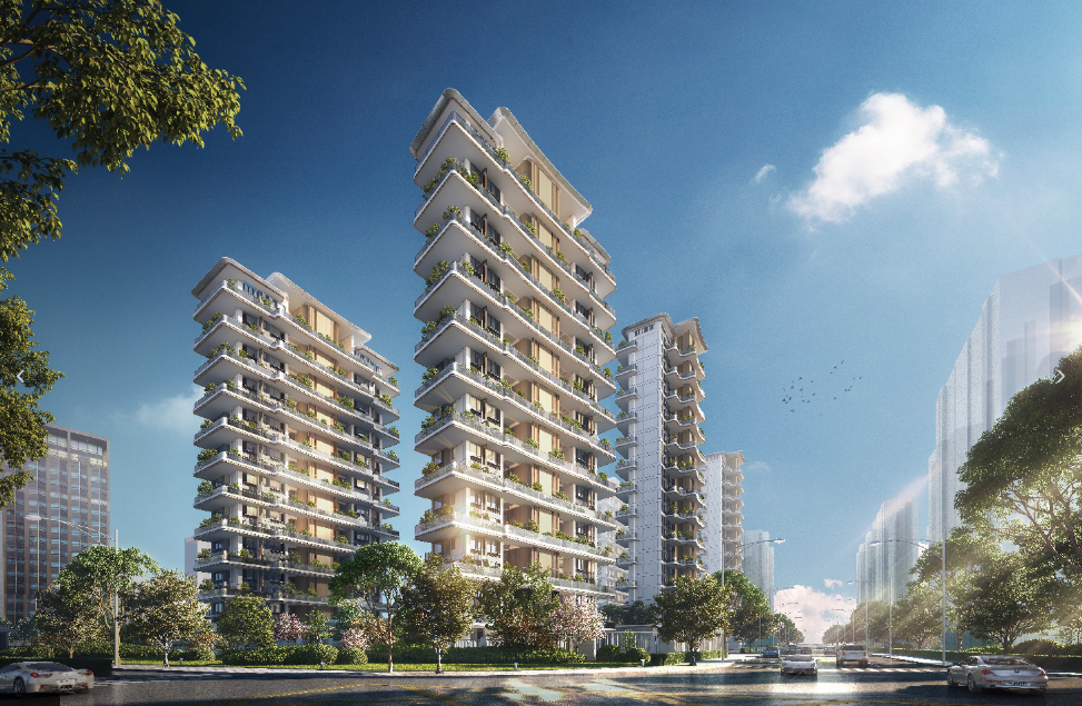 项目设计从米兰垂直森林理念中获得灵感,采用奇偶层南北花园规划,形成了连贯式L型及U型一体化空中庭院。